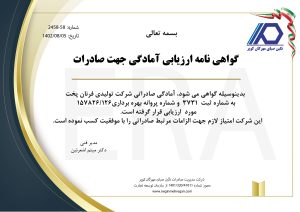 نمونه ERA های صادر شده توسط شرکت مدیریت صادرات نگین مهرگان